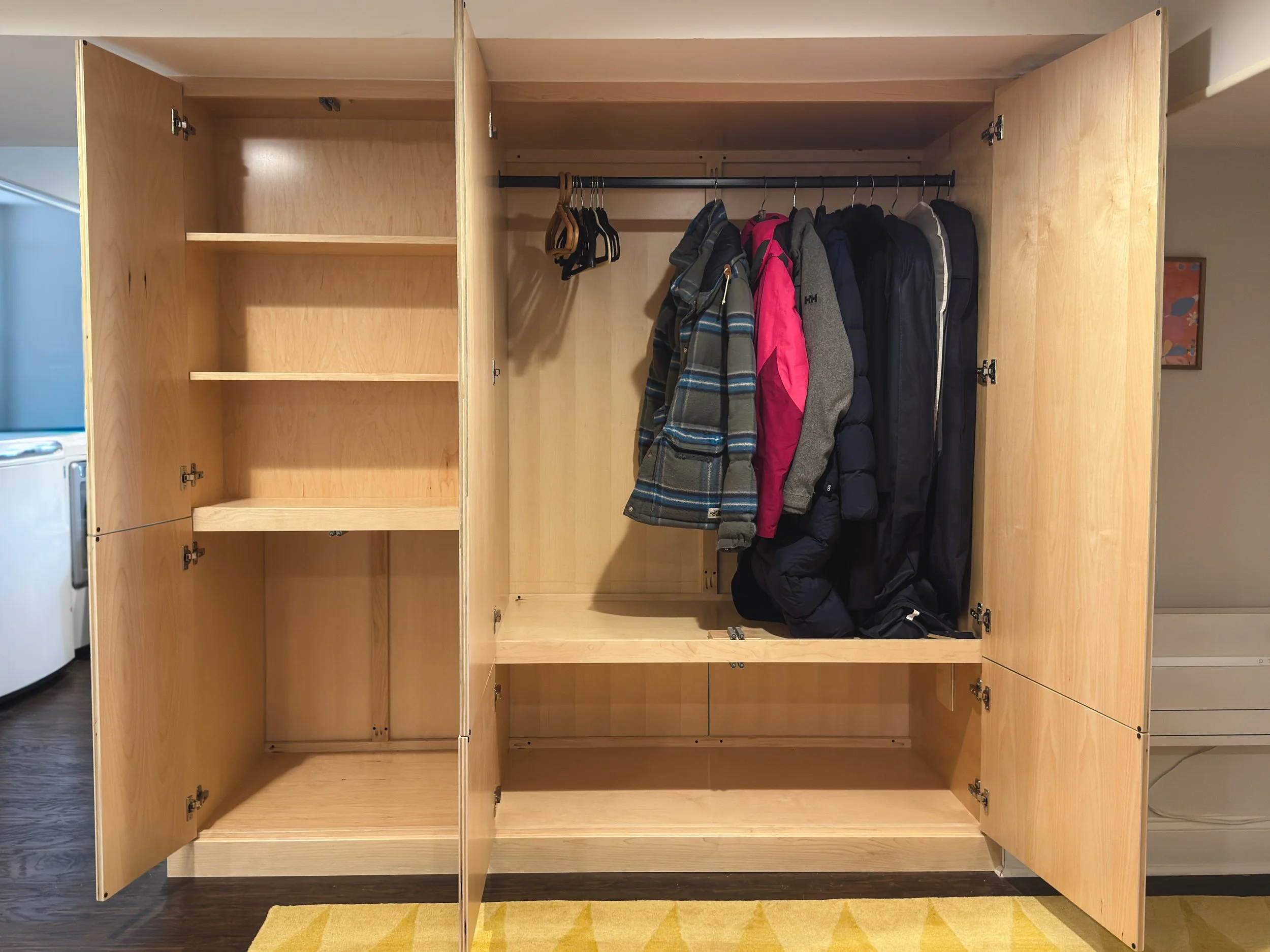 Hanging Storage: Jackets, coats, and seasonal clothing can be hung neatly on a sturdy rod.